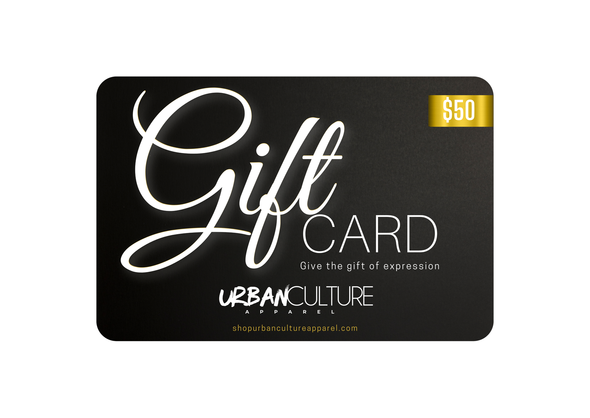 Unsure what to get for someone else? Let them choose with an Urban Culture Apparel digital gift card. Delivered by email with redemption instructions at checkout.